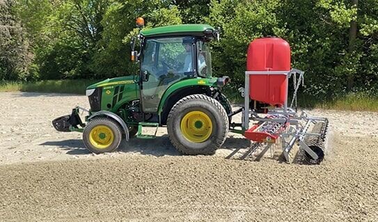 Deze bodemvlakker heeft een freesrol en een verstelbare sleepplaat